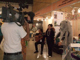 丁度演奏中にIUCN親善大使のイルカさんがブースに訪問してくれました。