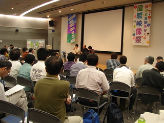 24日は国際映像祭 京都会場です。 連日でしたが、SDCCはがんばってブースを出しました。 招待映像は大阪会場と同じです。 お楽しみの3分間公募映像では 「派遣切りの痛み 闘う勇気−ポロロッカミュージカルでつかんだ希望」 制作:「月桃の花」歌舞団−日本が印象にのこりました。 街頭での行動の「活動報告」的な映像がやや多い中で、演劇の主演にとりくんだ女性が、役に取組むなかでどう変わったのかがインタビューを交えてよく伝わる映像でした。 SDCCの映像「ジュゴンを折ってジュゴンを守ろう」も上映されました。 会場にはアジアプレスの綿井健陽さんが講評のために参加しておられました。