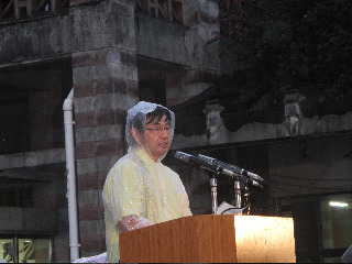 5月28日の夕方。 沖縄は梅雨のまっただ中。 普天間基地の移設先として「辺野古」が明記された「日米共同表 明」に抗議すべく、名護市では「『辺野古合意』をみとめない緊急 集会」が開かれました。 雨にも負けることなく名護市役所の中庭に集まった市民の数は12 00人。 |