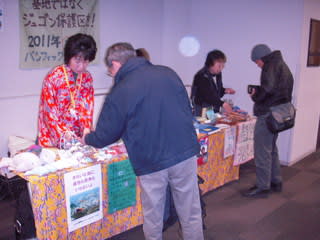 ホールの受付横で、ジュゴン保護キャンペーンセンターはブースを開きました。 |