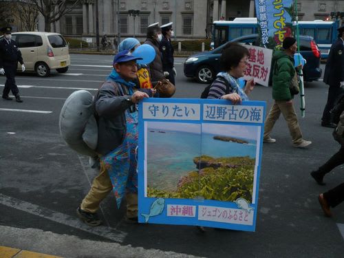 解散地点では、もう一度「We shall over come.」を歌い、シュプレヒコールで締めました。 辺野古新基地建設を撤回させることは、戦争・独裁国家への道をやめさせ平和と民主主義を守ること。 次回はもっともっと集まりましょう。 ☆じゅごん P.S 2/23の琉球新報に、大阪と京都のアクションが掲載されました。 |