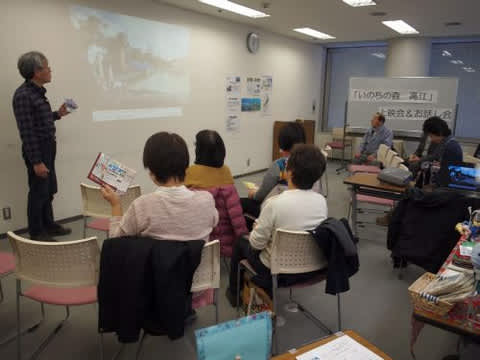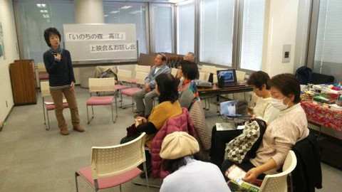 |  2月25日(土)、エル大阪で、ドキュメンタリー映画『いのちの森 高江』の 上映会&お話し会をしました。 映画ではでは、やんばる高江の自然のすばらしさが存分に映し出されます。 しかし、今、ヘリパッドが建設されオスプレイが飛びまわり、 そこに住む人たちの普通の暮らしが、生きものたちの命が奪われています。 チョウ類研究者のアキノ隊員のお話しから、高江の森がどんなに豊かで 貴重な森なのかが伝わってきます。  上映後、参加者でゆんたくし感想を共有しました。 中学生を修学旅行で沖縄に連れて行った方からは ・現地を訪れ自然に触れることで守りたいという気持ちが深まる ・若い時代にジュゴンや沖縄のことを学べば、将来平和をつくる ことにつながっていく という感想がありました。 ・過去にがんばって演習を止めたことがあるということは希望だが、 今回のことでは、こんなにがんばってもヘリパッドが作られてしまい、 無力感も感じる。 という意見もありましたが、 ・選挙で民意を示していくことが重要 ・真実を知らせていけば、基地に反対する声が大きくなる そして、辺野古・高江でずっと座り込みが続いていることが大きな希望だと いう意見には、皆さんとても納得されていました。 SDCCからは、政府がやんばるの森を2018年世界自然遺産登録に推薦したこと、 今後IUCNがユネスコからの委託を受けて調査に入るので、国際的枠組みで やんばるの生きものを守る取り組みをしていくことなど、お話ししました。 4/15の「ジュゴンでトレイン!」、夏のじゅごんの里ツアーにも 興味を持ってくださる方もいて、よい上映会になりました。 『いのちの森 高江』は各地で上映が続いていると思います。 まだの方は、ぜひご覧になってください。  ZAN |