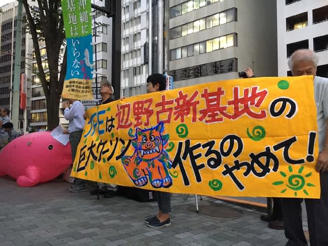 辺野古現地からの電話報告、MXテレビへの抗議行動の報告、機動隊派遣訴訟の報告、JFE抗議行動の報告など、各団体から工事強行を許さない決意が表明されました。